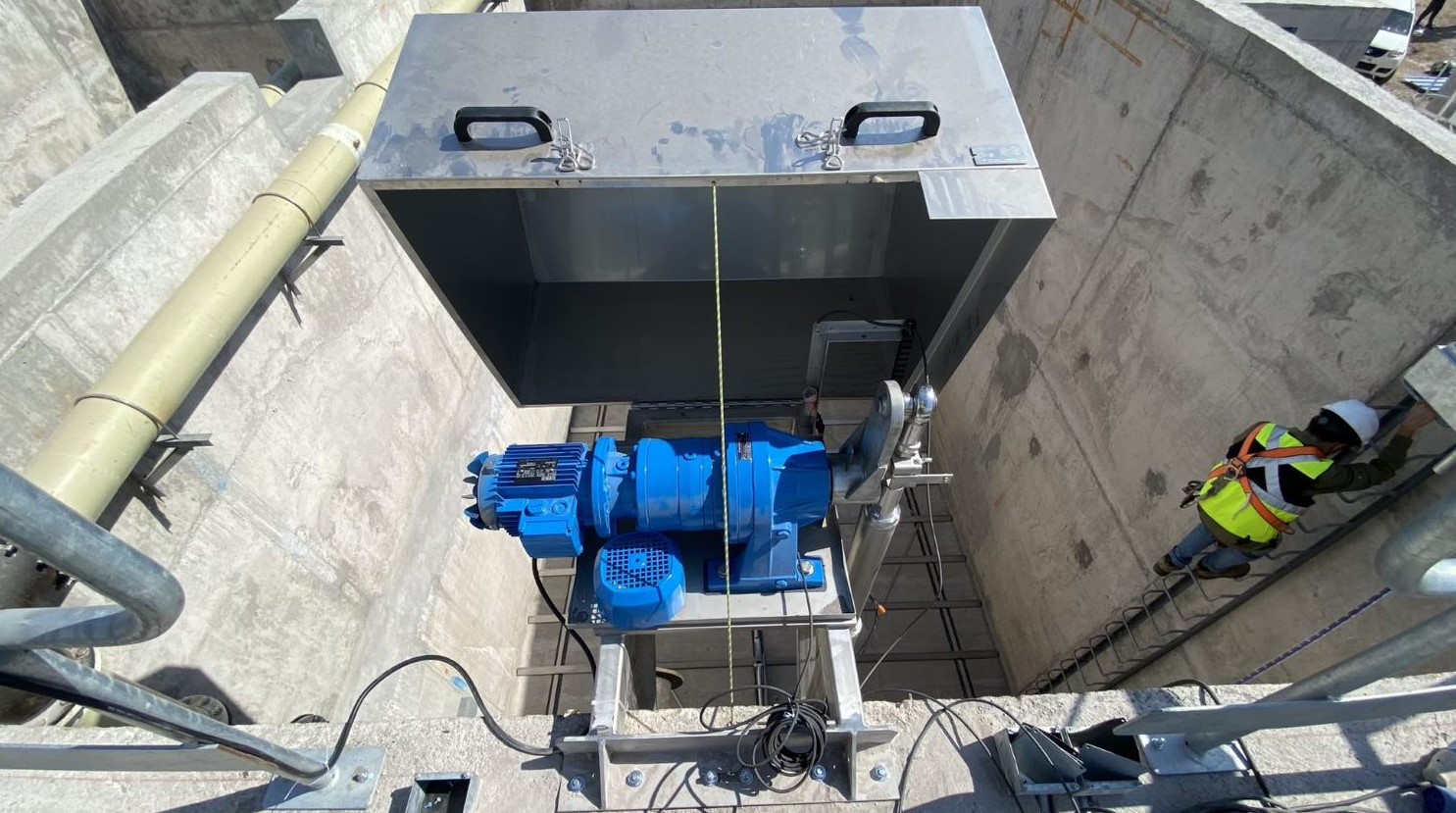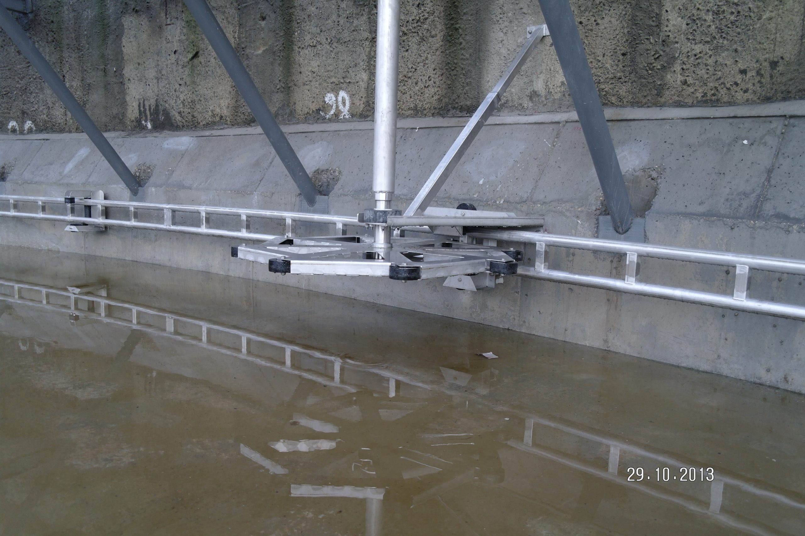 El barredor de lodos circular Zickert Z3700 ha sido diseñado para transportar lodos de fondo y opcionalmente, también espumas flotantes para estanques de sedimentación circulares. El sistema cuenta con una unidad motriz de instalación fija en el lateral del estanque, lo que elimina la necesidad de una estructura de puente giratorio. El barredor se acciona eléctricamente por un motor, y el eje vertical de transmisión transfiere el movimiento desde el motor, situado en la parte superior del estanque, al barredor situado en la parte inferior del estanque
